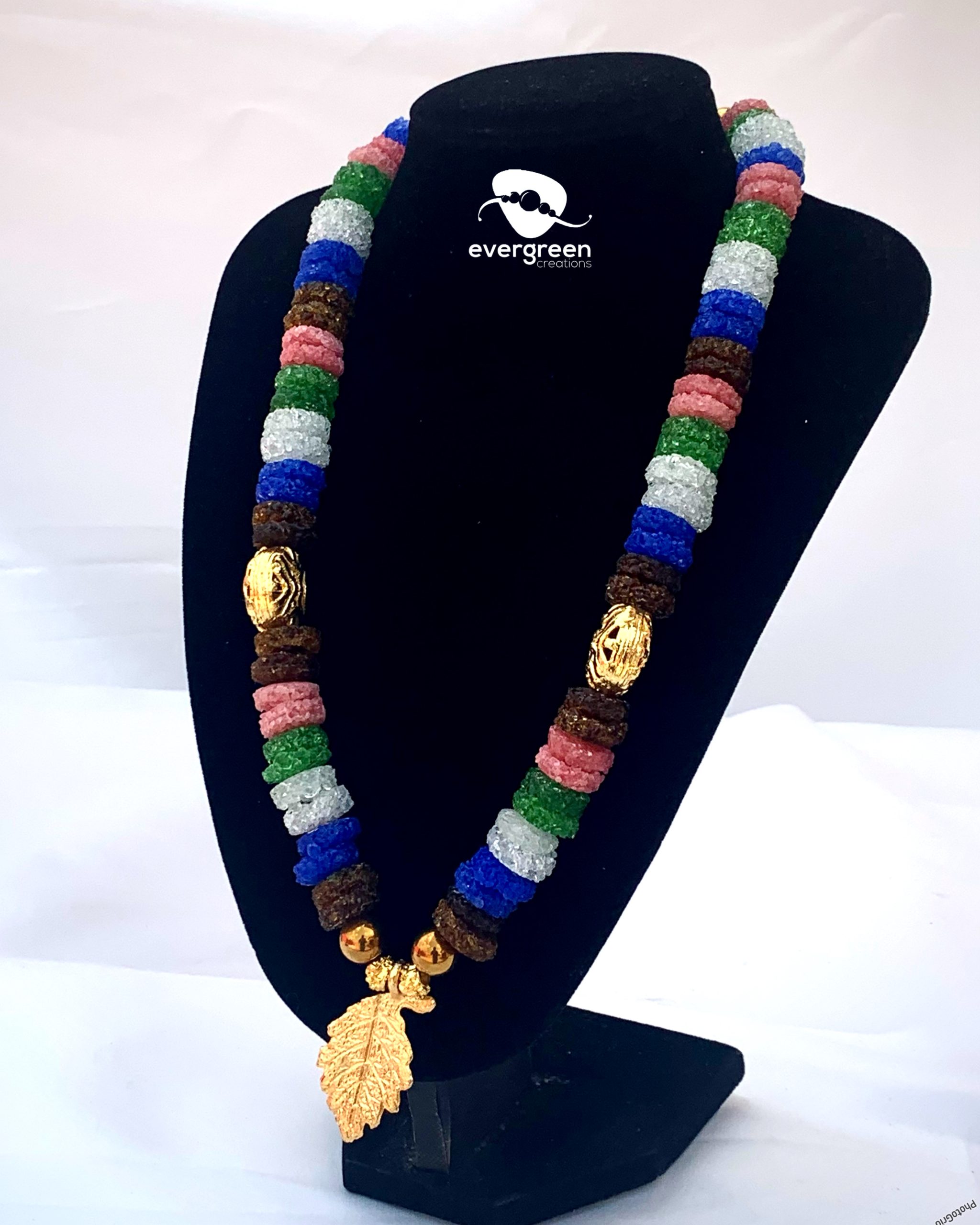 Beautifully beaded necklaces that come in a variety of colors and styles of choice.